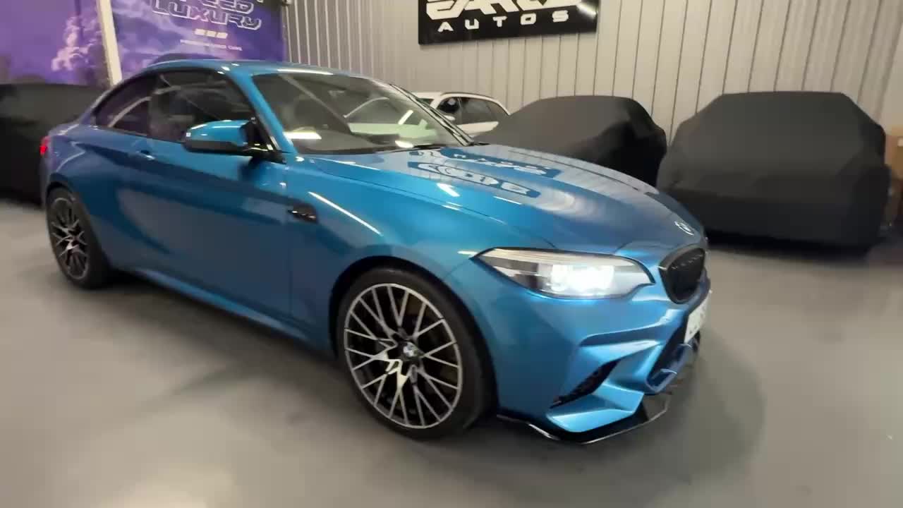 We are very proud to offer this stunning 2018 BMW M2 3.0 BiTurbo Competition, finished in the eye-catching Long Beach Blue. With only 36,380 miles on the clock, this coupe combines exhilarating performance with everyday practicality, featuring four seats and two doors. The powerful 3.0-litre engine delivers an impressive 404 bhp and 406 lbs/ft of torque, allowing for a thrilling acceleration of just 4.2 seconds to 60 mph. With a top speed of 155 mph, this vehicle is as efficient as it is exhilarating. Plus, it comes with a full BMW & BMW specialist service history and two keys, has recently been serviced and will have an MOT before sale, ensuring peace of mind for its next owner. With its striking Long Beach Blue exterior, this BMW M2 is sure to turn heads wherever you go. The vibrant colour not only enhances the car's sporty appeal but also reflects its dynamic performance capabilities. Don’t miss out on the opportunity to own this exceptional vehicle. Get in touch with us today to arrange a viewing or to find out more about this remarkable BMW M2!