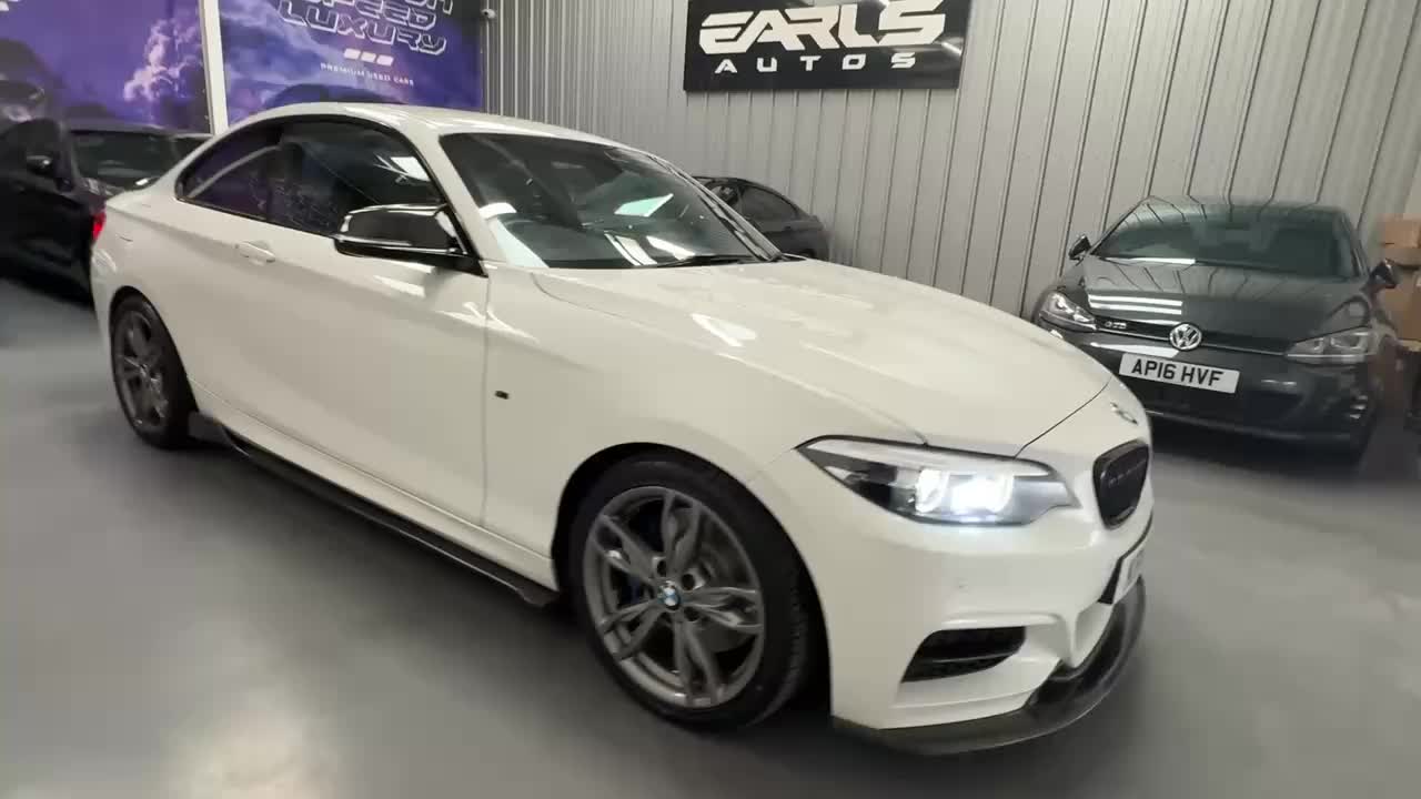 We are very proud to offer this stunning 2018 BMW 2 Series 3.0 M240i Coupe, a remarkable blend of performance, luxury, and style. With a powerful 3.0-litre petrol engine delivering an impressive 335 bhp and 369 lbs/ft of torque, this rear-wheel-drive coupe accelerates from 0 to 60 mph in just 4.6 seconds, reaching a top speed of 155 mph. The automatic transmission ensures a smooth and responsive driving experience, while the vehicle's full service history and ULEZ compliance add to its appeal. With a mileage of jus over 81,700 miles, this coupe is ready to deliver exhilarating drives for years to come. This vehicle has a full carbon styling kit, wheel spacers all around and a Cobra cat-back exhaust system, which isn't too loud and doesn't drone. Engine wise, this vehicle is standard as has not been modified.